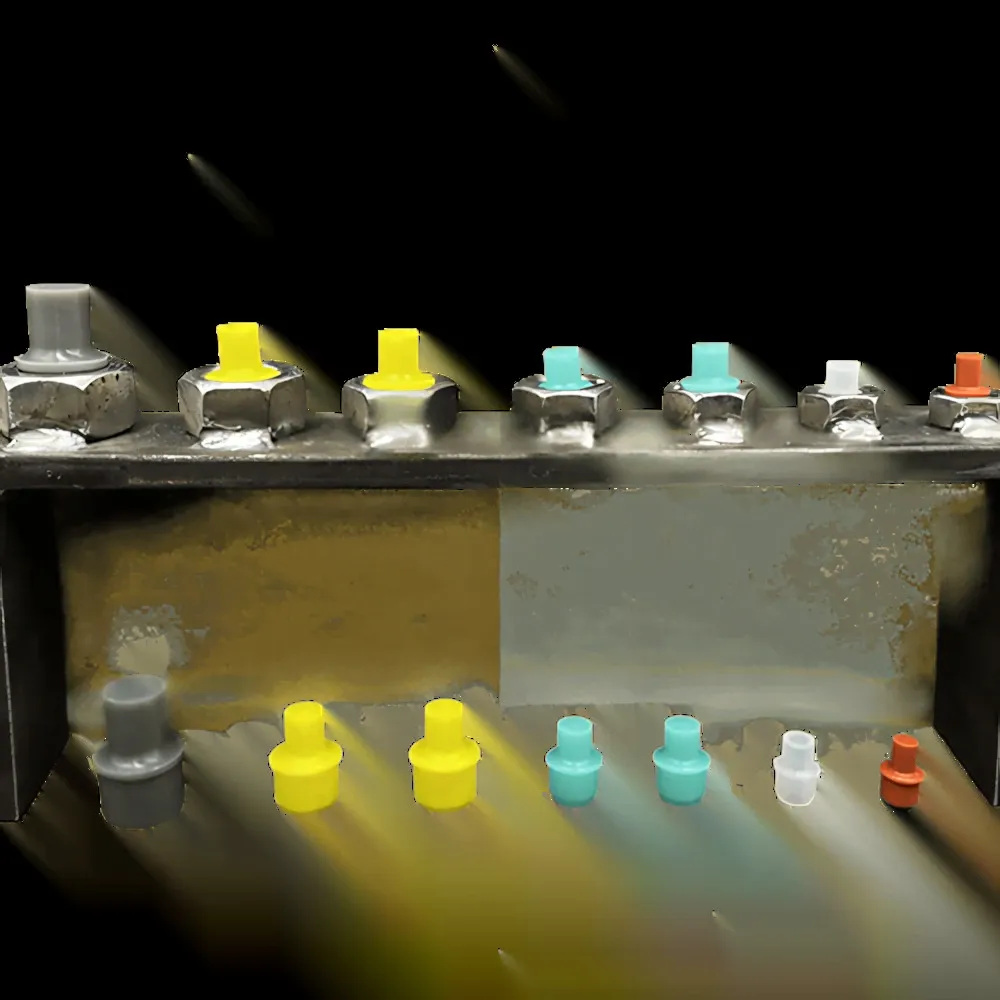 Somunların dişli delikleri ve boruların iç kısımlarıyla uyumlu, dişli yapısıyla sıvı ve toz sızmalarını önleyen maskeleme tapaları.