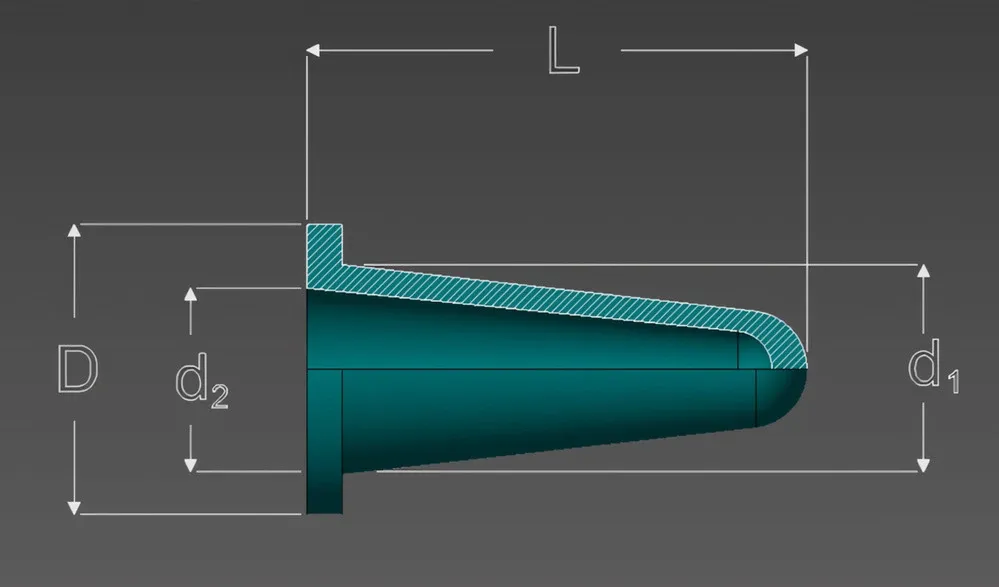 Hem tapa hem şapka olarak kullanılabilen flanşlı konik tapalar.