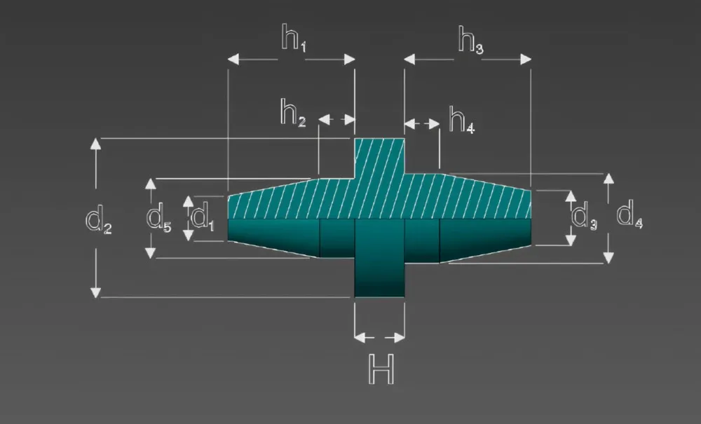 | SKU | d1 (mm) | d2 (mm) | d3 (mm) | d4 (mm) | d5 (mm) | h1 (mm) | h2 (mm) | h3 (mm) | h4 (mm) | H (mm) |